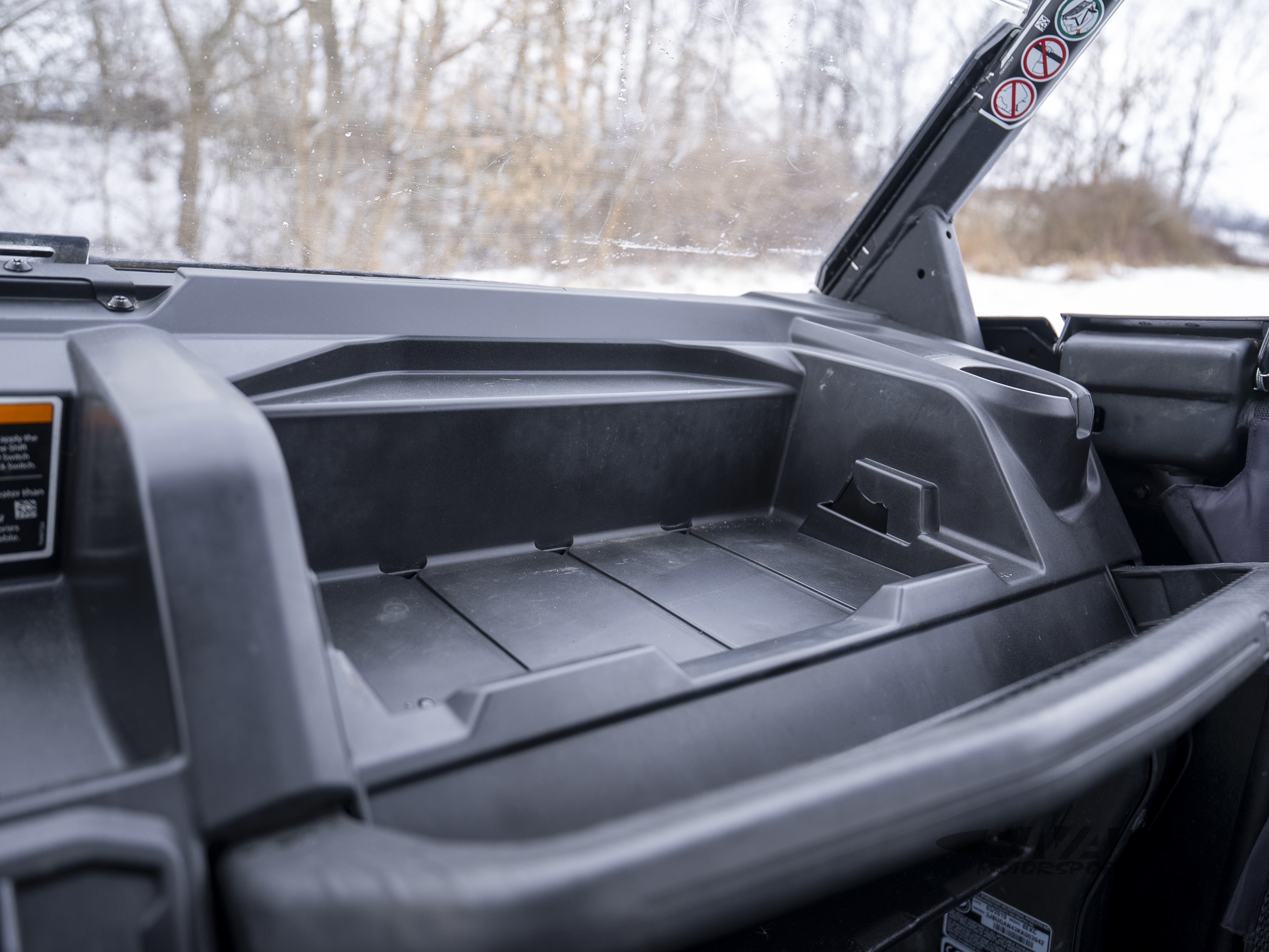 It includes 0.4 gal (1.3 L) of under dash storage with an enclosed pocket, perfect for stowing small essentials. All in all, the Defender proposes a total of up to 3.1 gal. (11.7 L) of storage solutions.